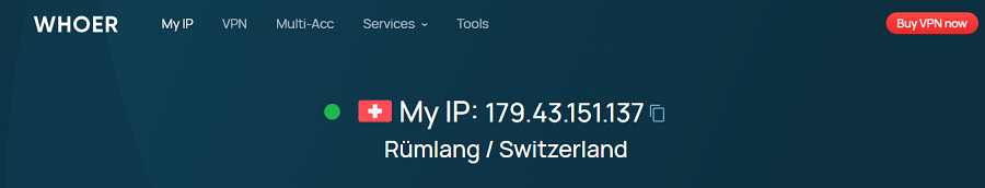 When you land on Whoer.net, the first thing you’ll notice is the straightforward display of your IP address. The website immediately shows you your current IP, along with basic details about your connection, like your geolocation (country and city), your ISP (Internet Service Provider), and your connection type. This is a simple, quick way to see how your device appears to websites and services you interact with.